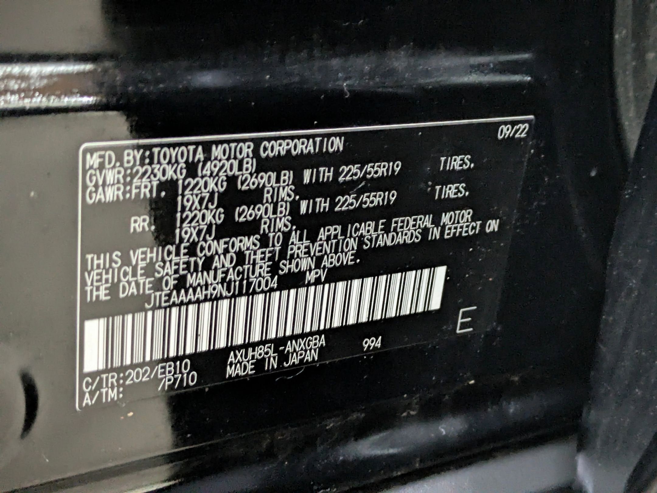 JTEAAAAH9NJ117004